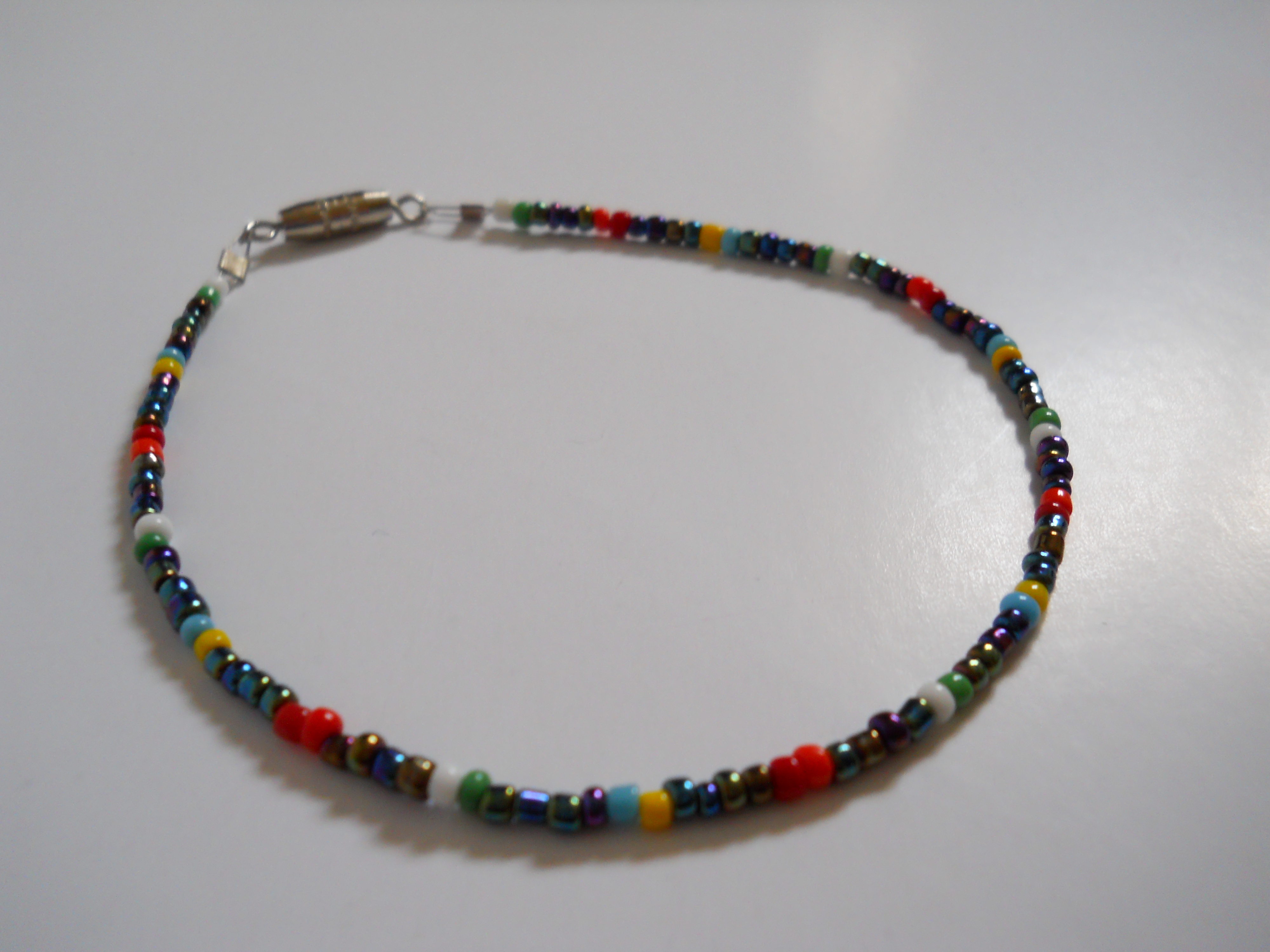 All Handmade with Metallic Seed Beads and brightly colored Seed Beads; good to wear with other stackable bracelets! Connected with a Torpedo Clasp