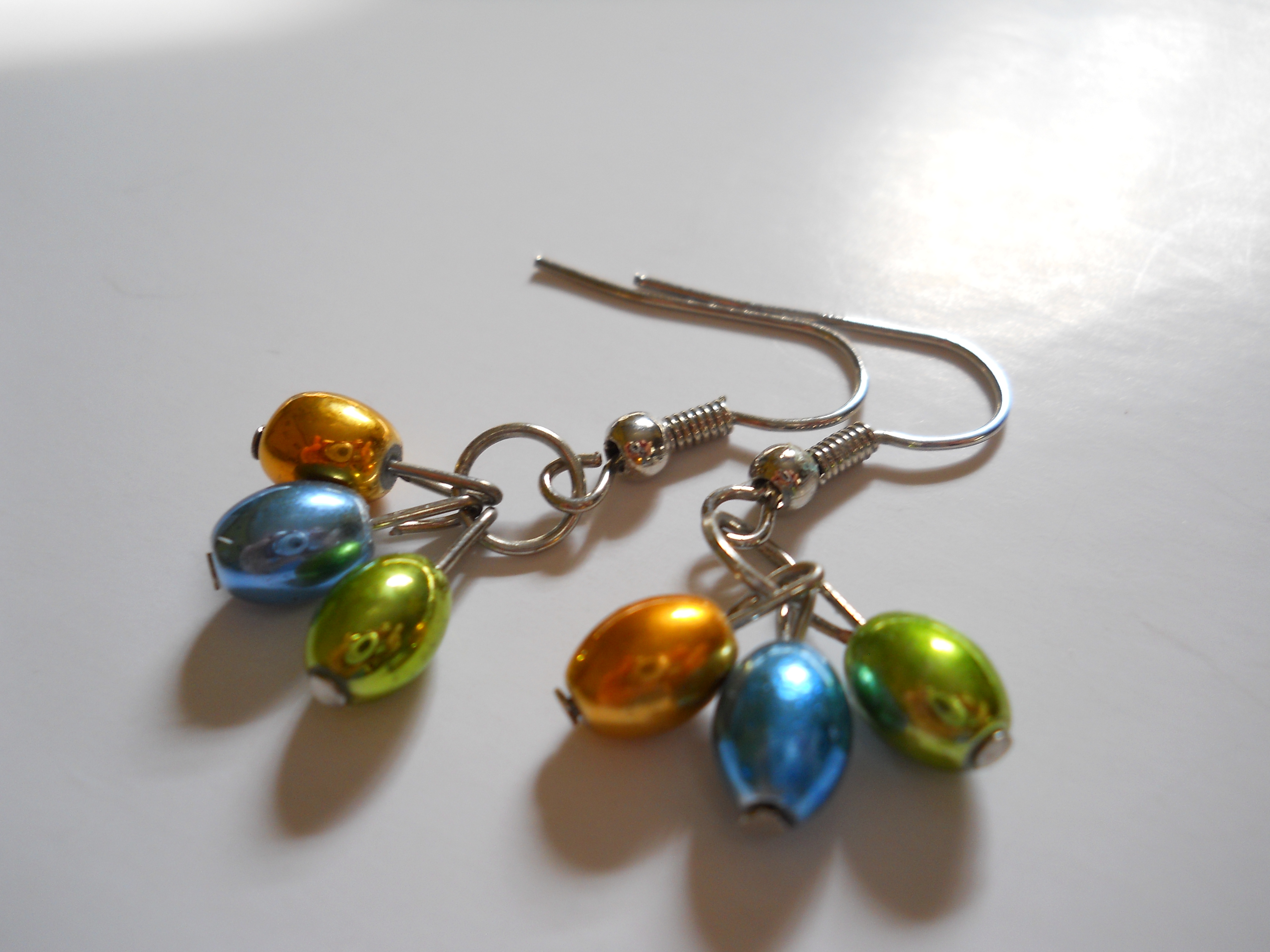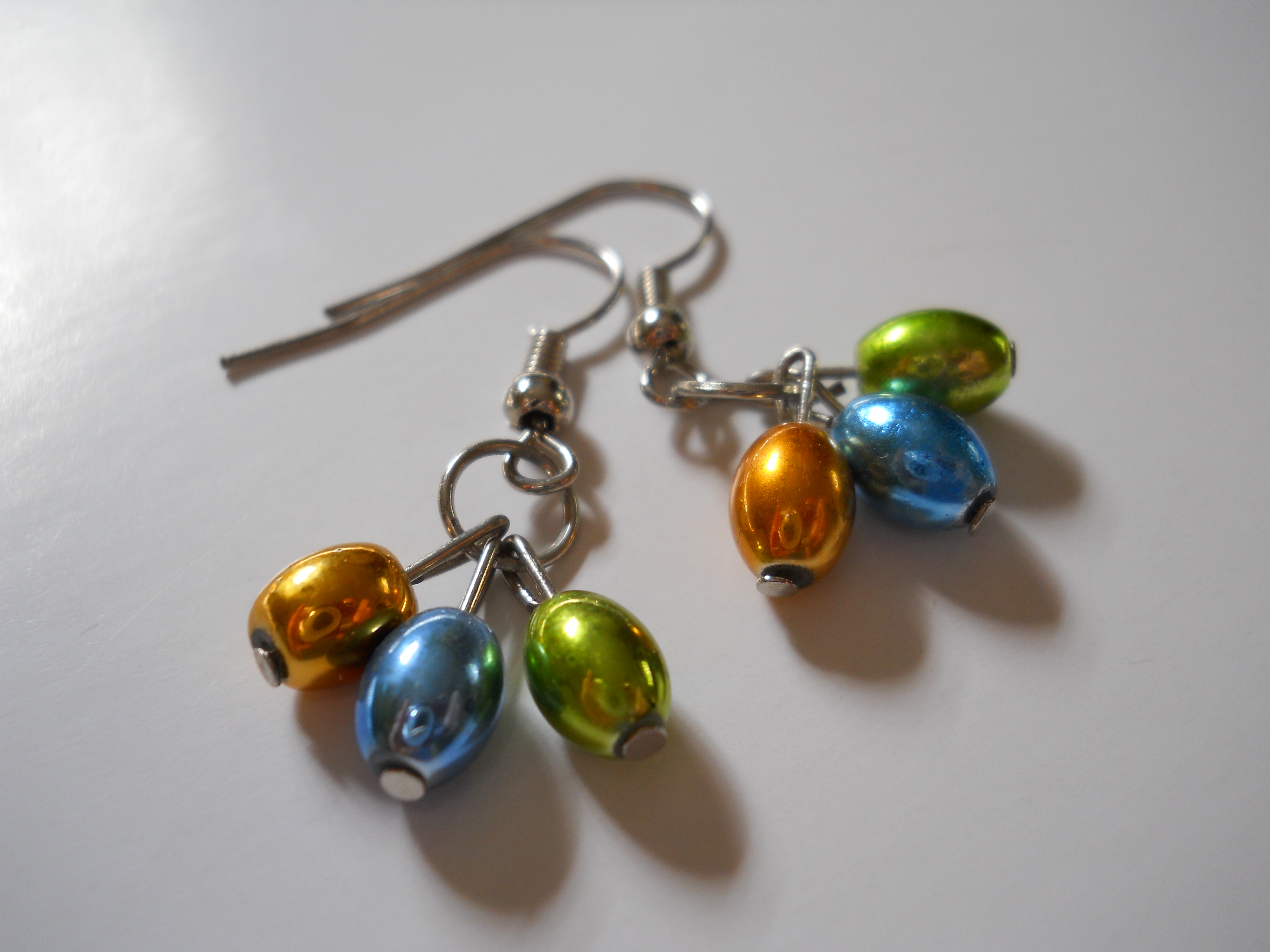 Orange, Green, and Blue Egg Bead Earrings