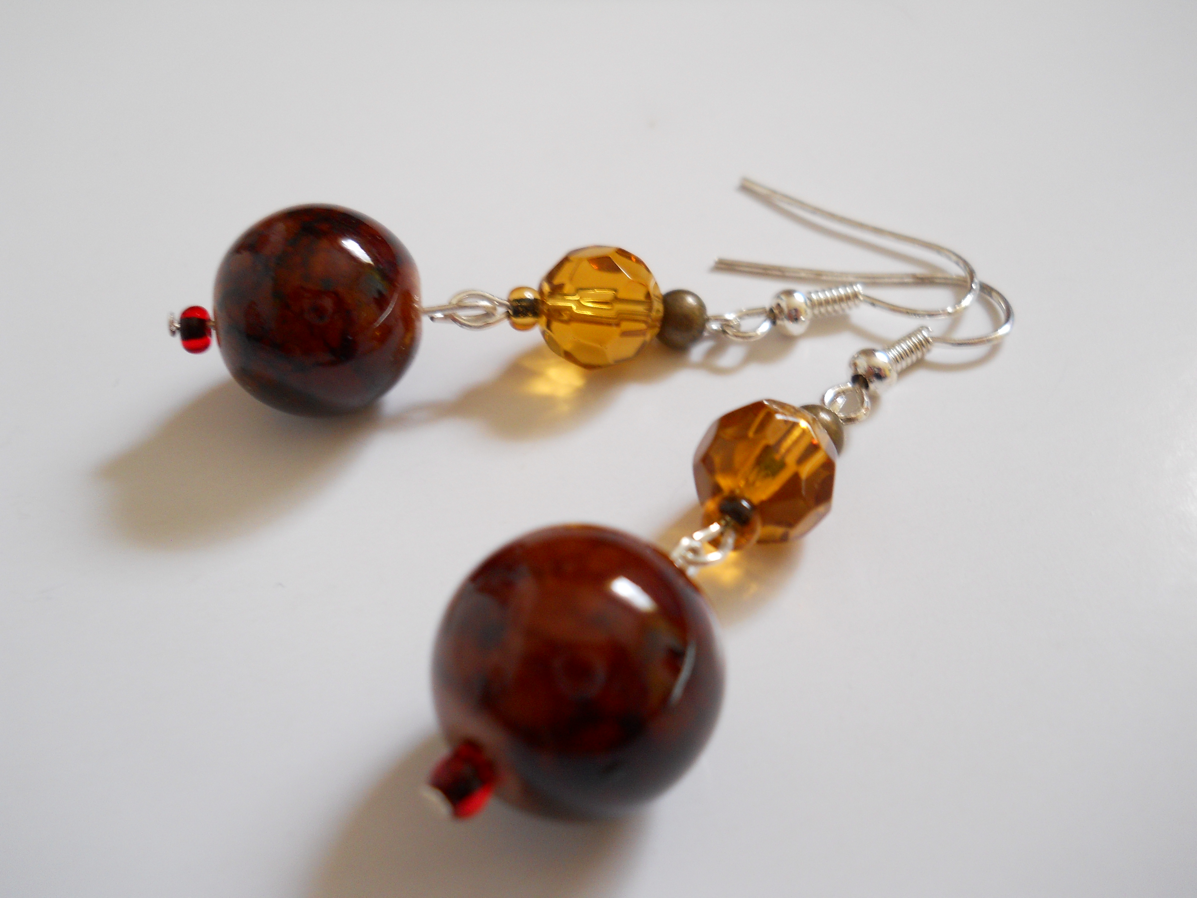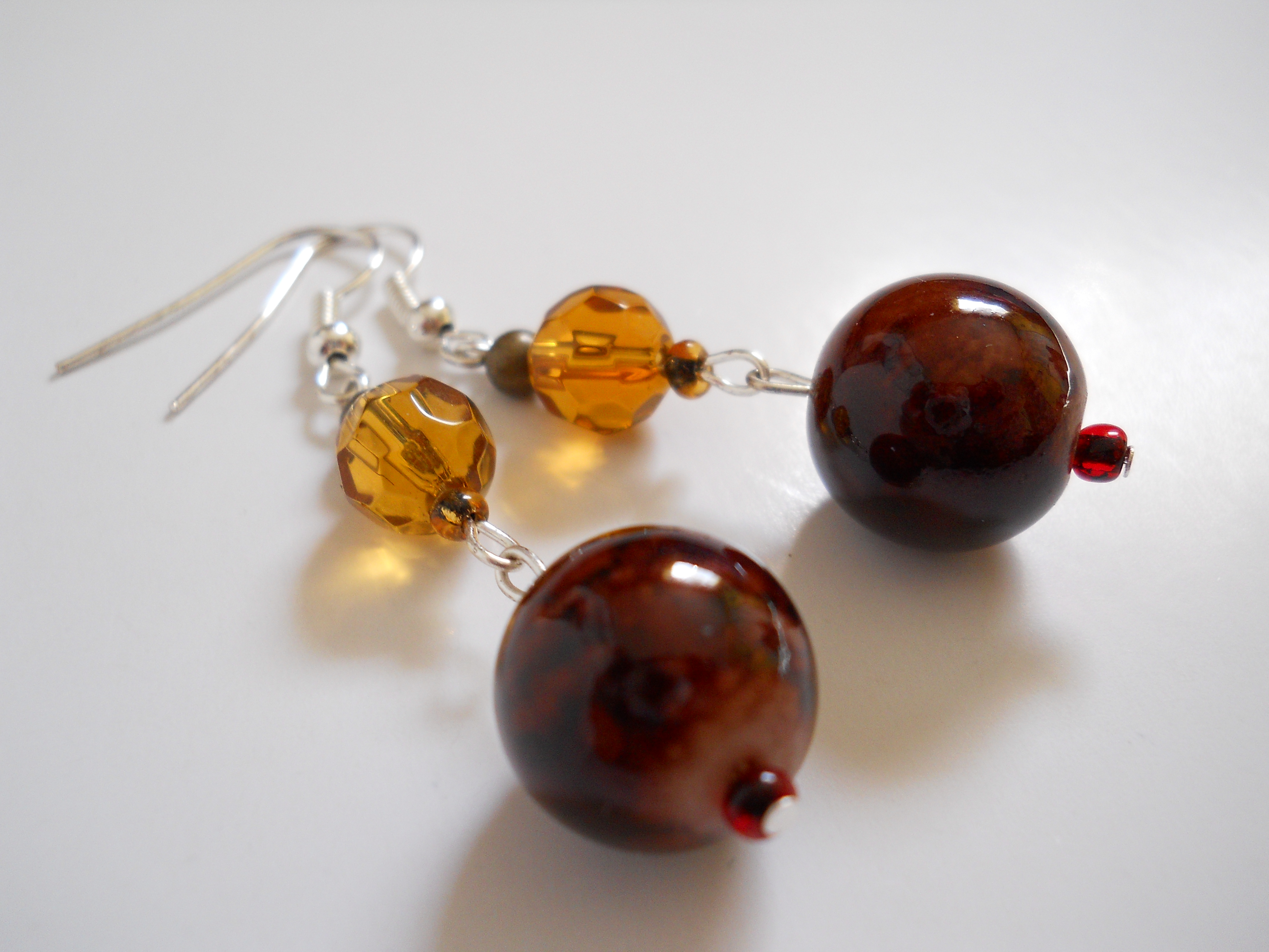 Mahogany and Amber Bead Earrings