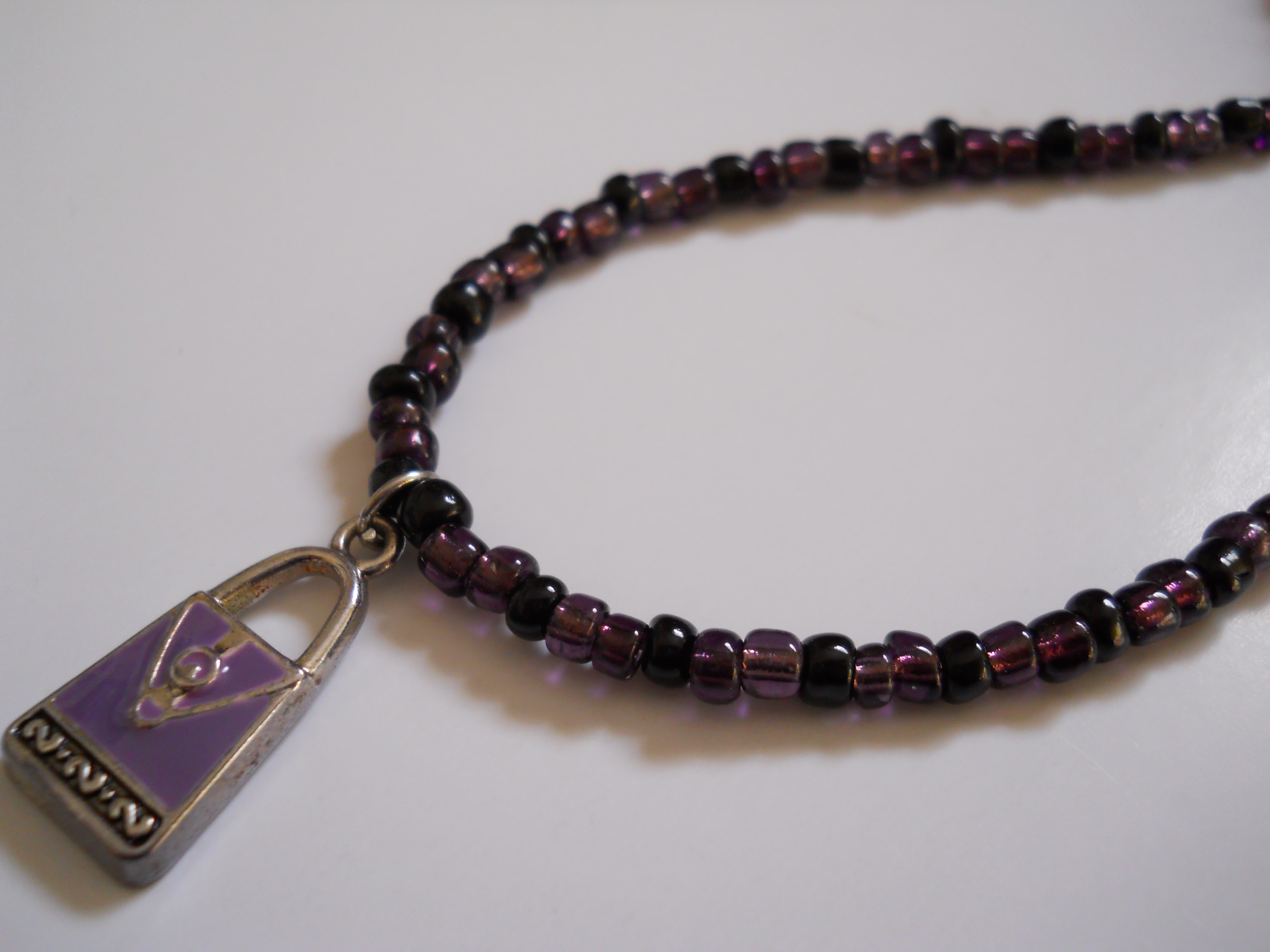 Purple Purse Charm Bead Necklace