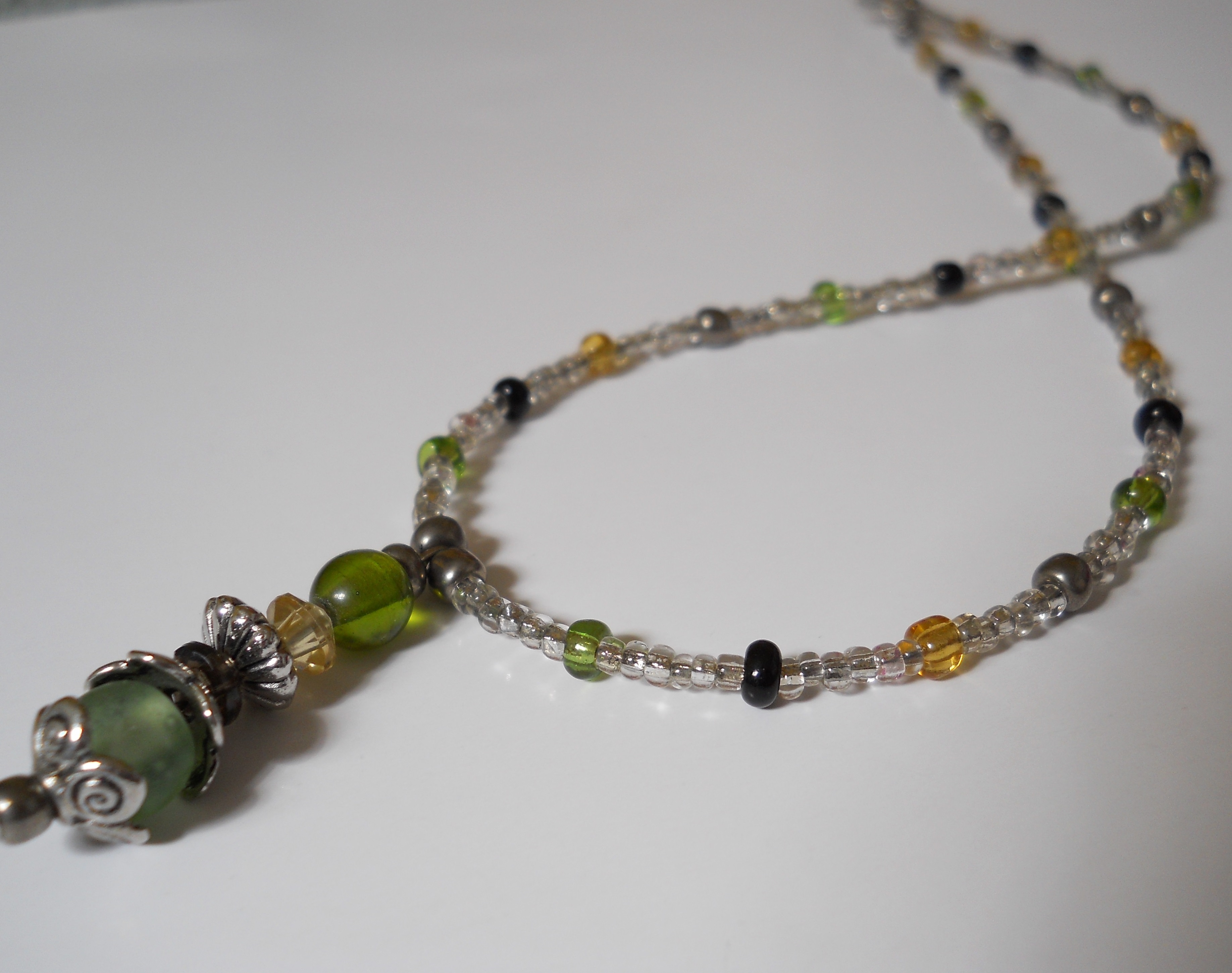 Adorn your neck with this handmade glass and metal bead necklace, centered by an exquisite silver metal and glass bead pendant. Connected with a lobster clasp