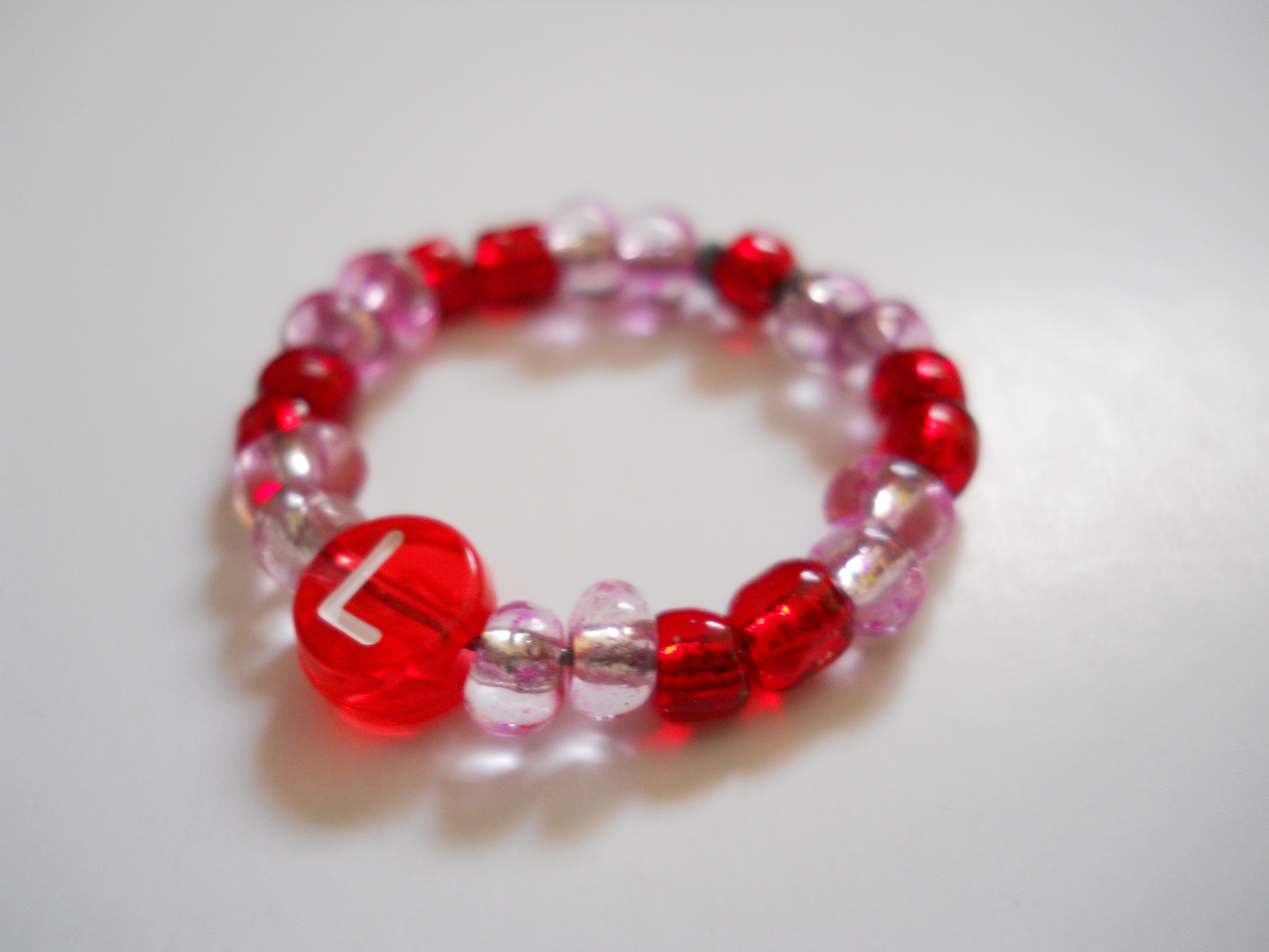 All Handmade with red and pink Czech Glass E-Beads, centered with an Acrylic Letter Bead. Made with metal wire