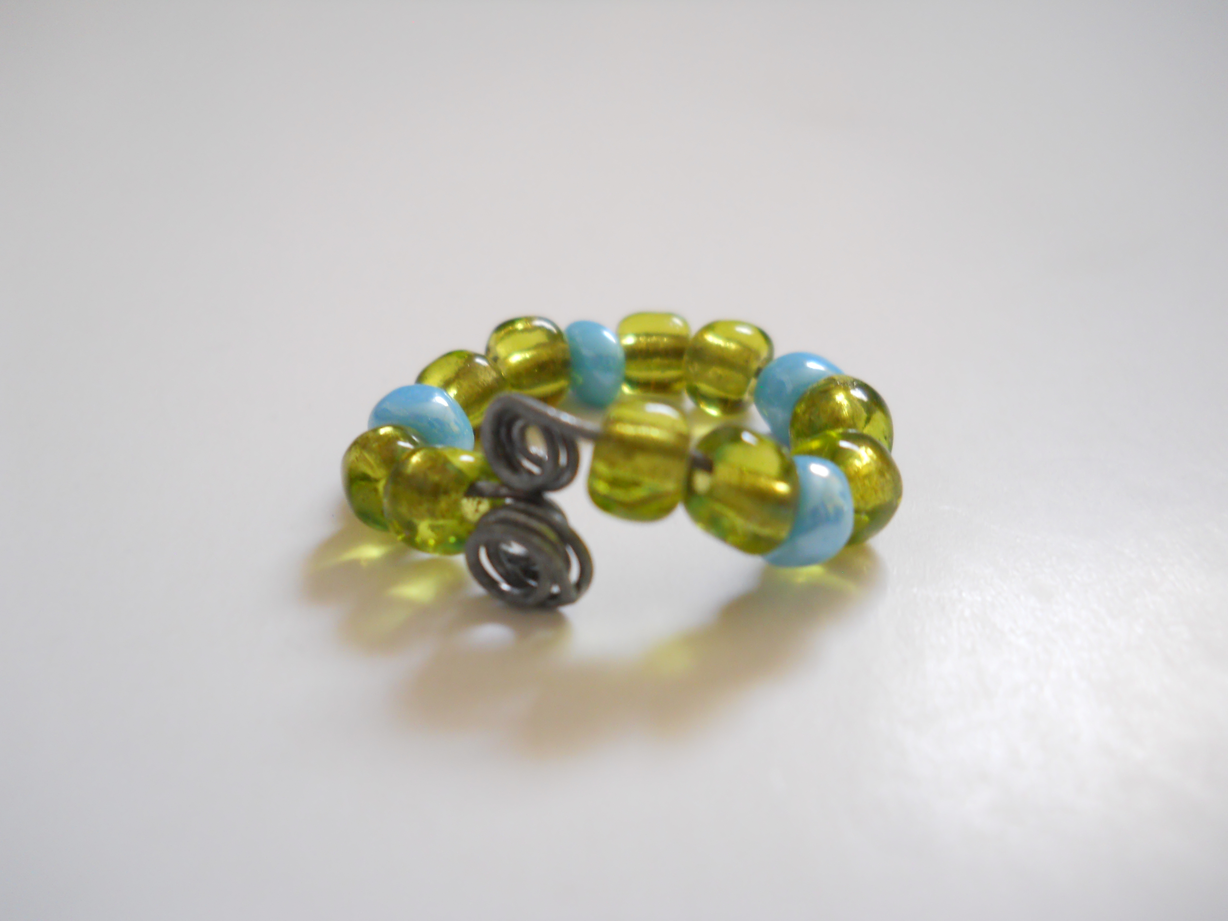 Lime and Blue Wire Bead Ring