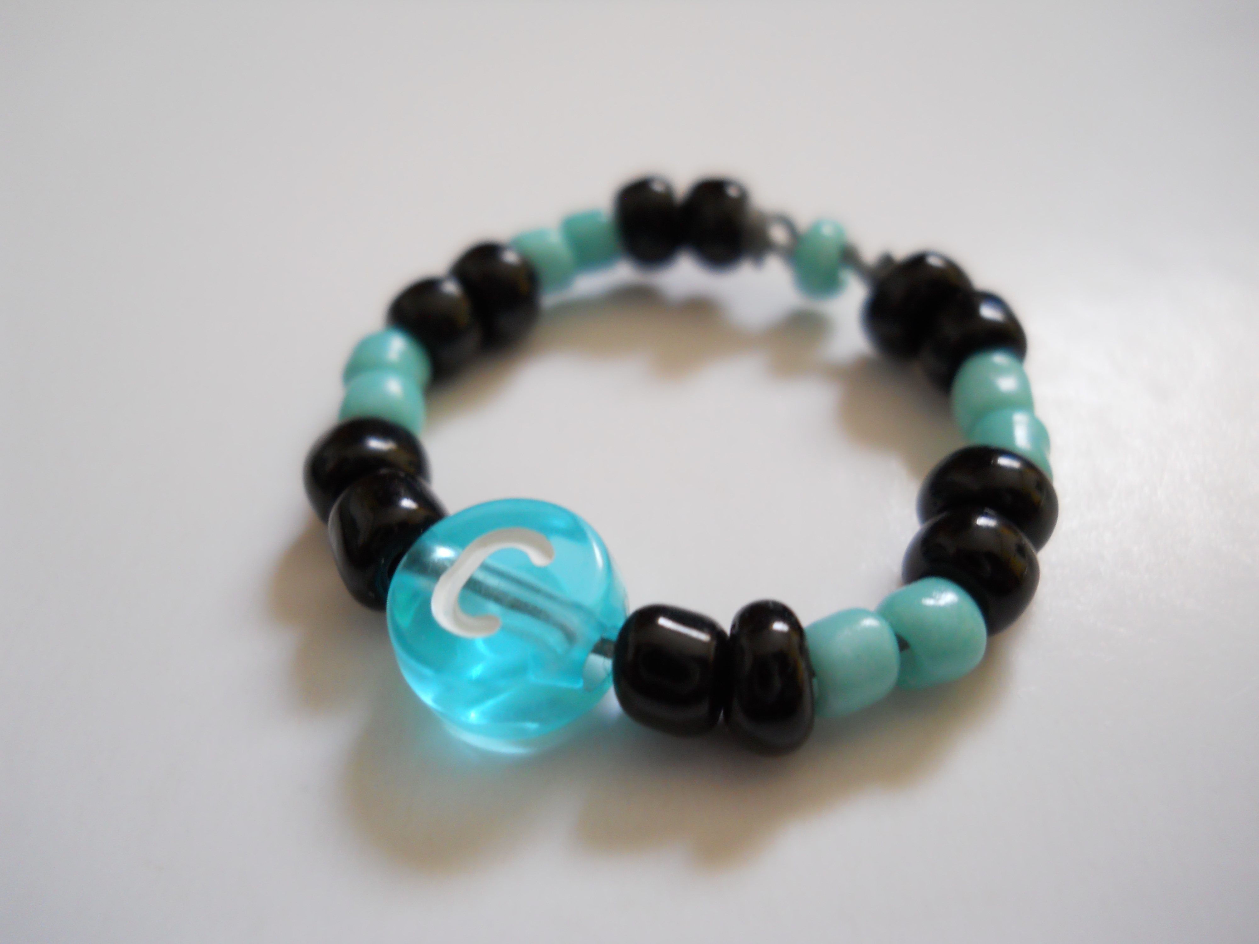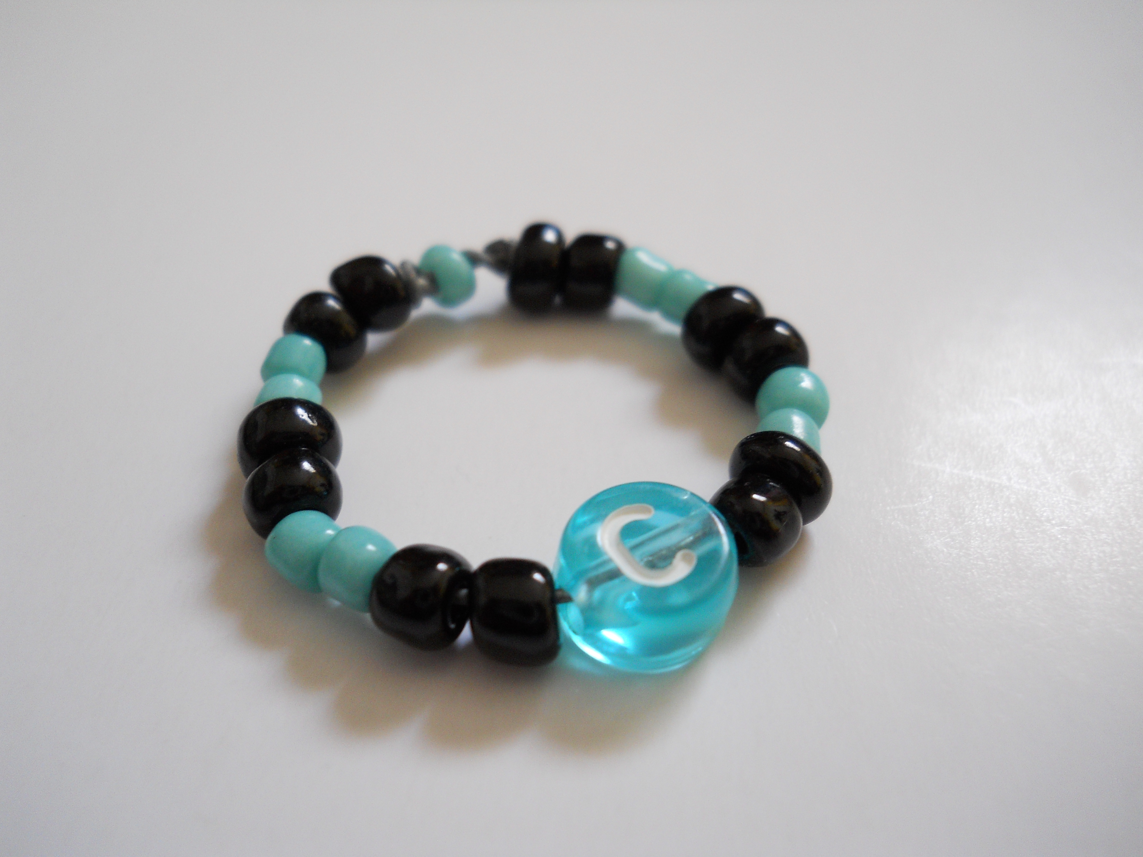 All Handmade with Robin's Egg Blue and Black Czech Glass E-Beads, centered with an Acrylic Letter Bead, made with metal wire